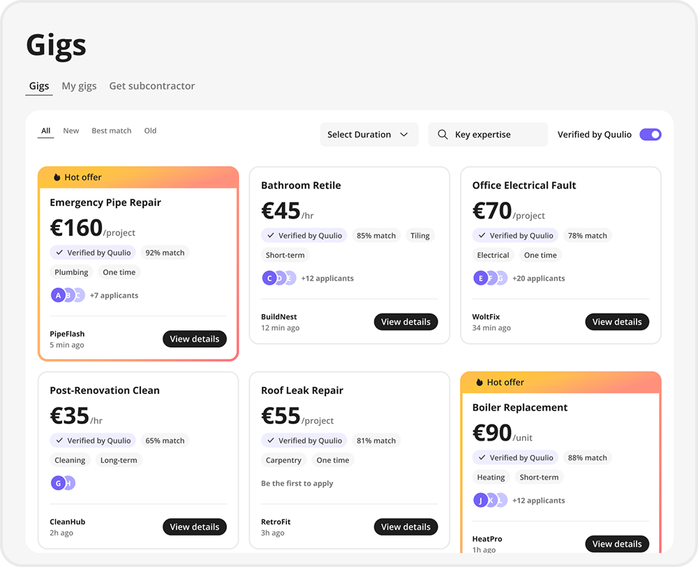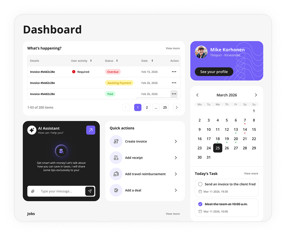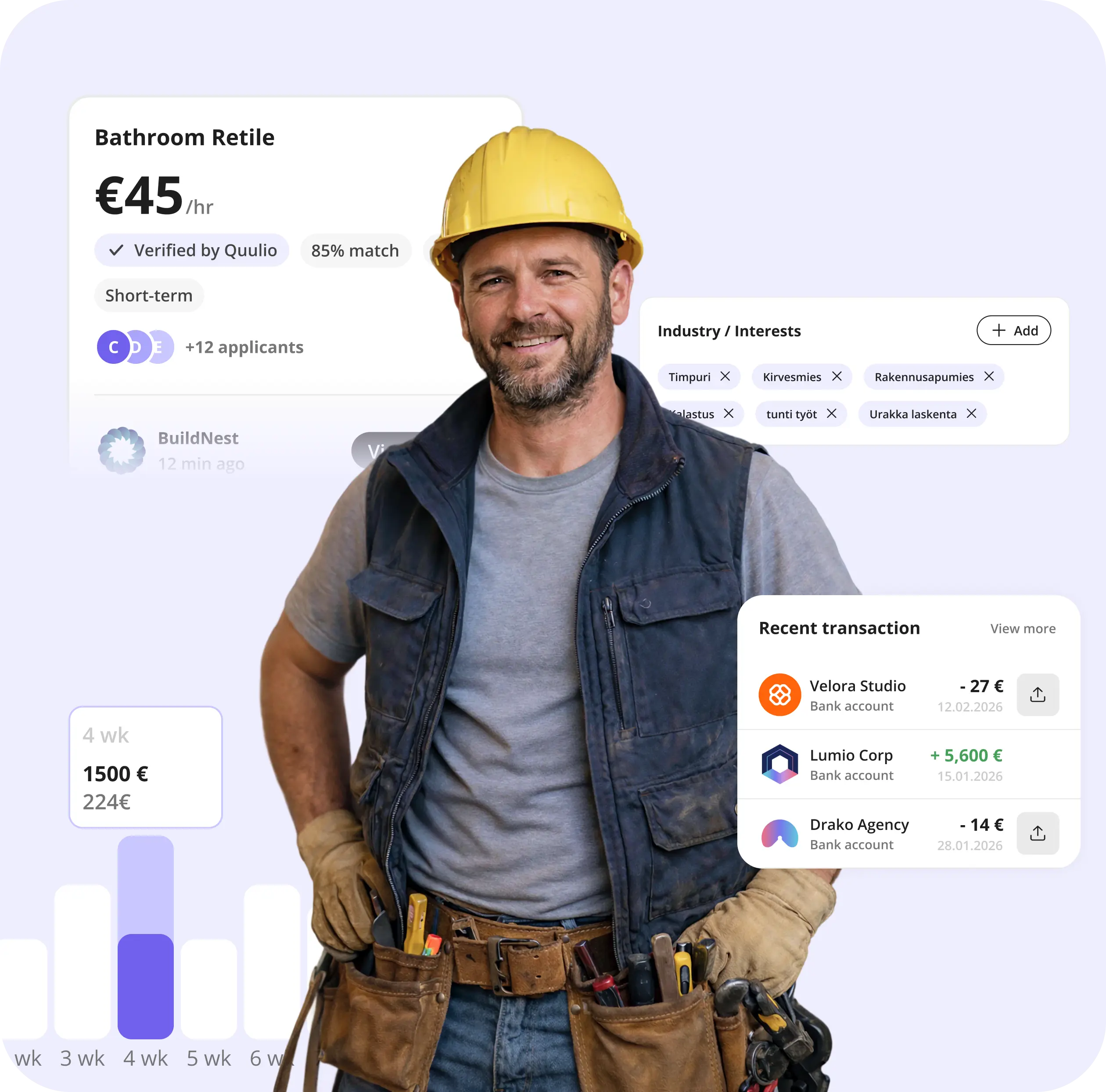 Quulio is built for self-employed professionals, solo business owners, and small service businesses that want to manage their work, finances, and business admin in one place.
