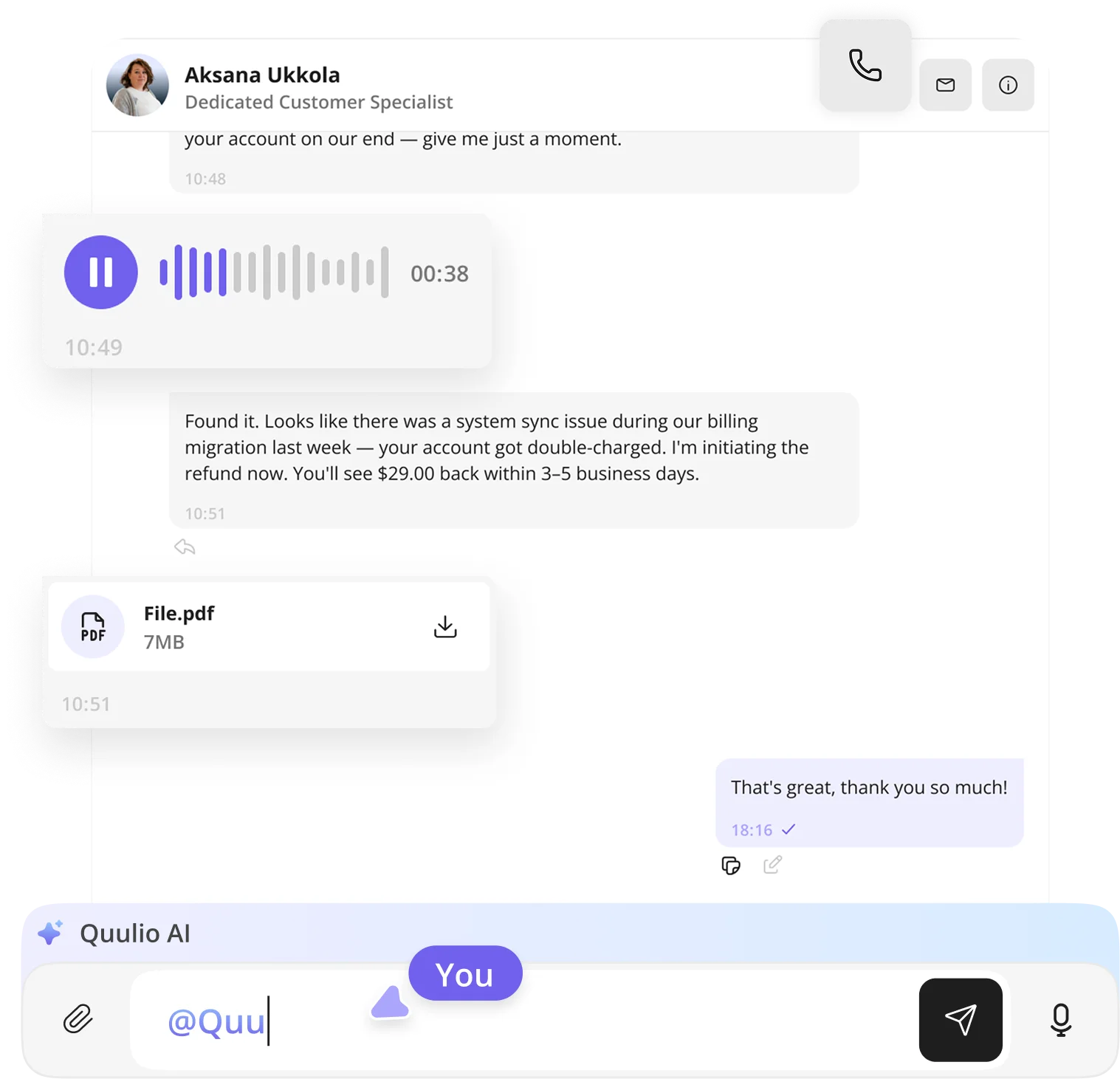 Quulio combines smart automation with real human support — so you can focus on your work.